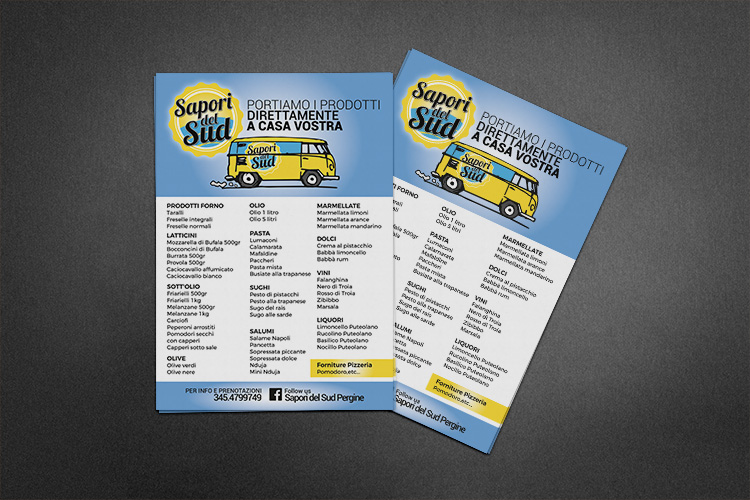 Ideazione e progettazione grafica: Logo, Biglietto da visita, Volantino, Etichette, Visual Social e PVC adesivi per Furgone.